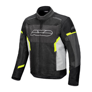 Giacca da uomo in tessuto, ventilata, con interno removibile antivento. Giacca esterna in tessuto armaturato e pannelli in tessuto traforato. Collo con margine in neoprene, interno in microfibra e chiusura frontale con bottone a pressione. Chiusura frontale con zip. 2 tasche al fondo con chiusura zip. Multi regolazioni su maniche, fondo e polsi. Ampie aree di ventilazione su torace, maniche e schiena. Dettagli riflettenti su spalle e schiena. Interno foderato in tessuto traspirante. 2 tasche interne con velcro. Tasca interna impermeabile con zip. Zip di connessione su punto vita interno per collegare la giacca ai pantaloni della collezione AXO. Interno removibile e ripiegabile in tessuto antivento. Certificato secondo normativa EN17092:2020 - Livello: Classe A. Protezioni EN1621-1 di Livello 1 Type A su spalle e gomiti. Predisposizione paraschiena EN1621-2 liv. 2 (paraschiena non incluso L 1903888 L>5XL, M 1903889 S>M)