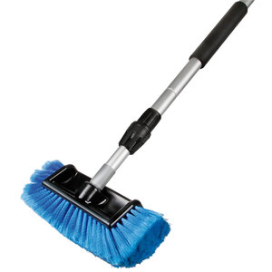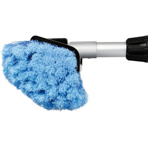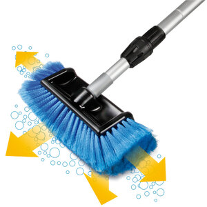 Set idrospazzola con manico telescopico, innesto a vite. Idrospazzola 30x16 cm con fibra piumata antigraffio ad alta densità specifica per carrozzeria. Bustino in plastica con angoli arrotondati di protezione. Manico in alluminio (Ø 30 mm), telescopico (133-250 cm). Innesto a vite in metallo. Impugnatura in gommaspugna. Interruttore di flusso e raccordo innesto rapido