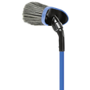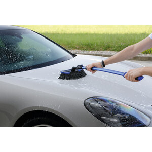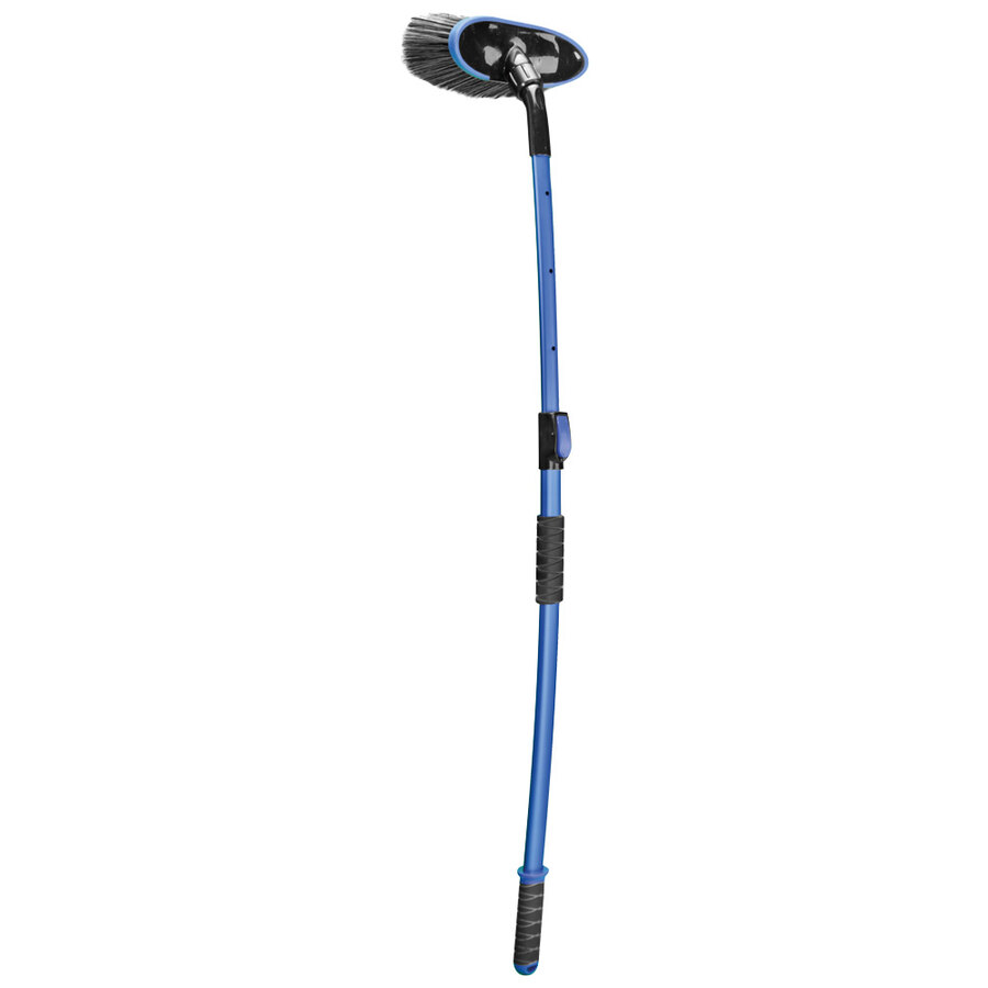 Spazzola lavaggio. Curvatura del manico e della spazzola per facilitare il lavaggio dei veicoli più alti. Manico telescopico (102-155cm) in alluminio. Setole antigraffio in polibutilene tereftalato. Impugnature in morbida gommaschiuma anti-scivolo. 25cm