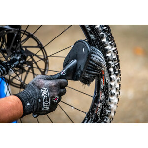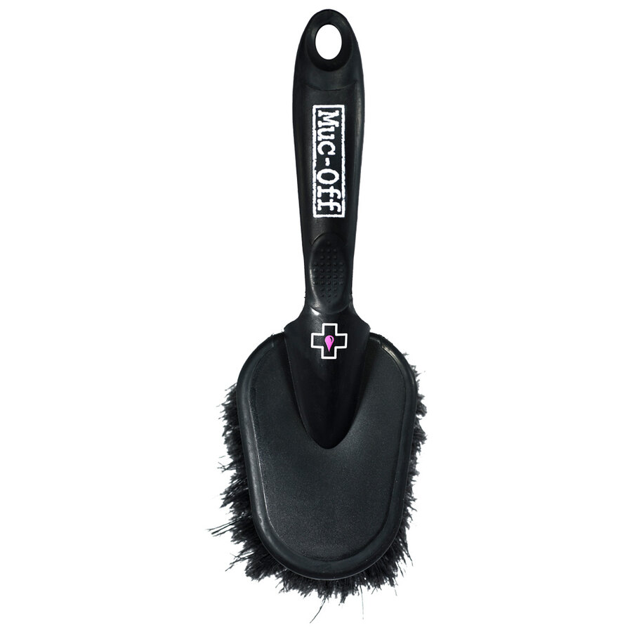 Spazzola lavaggio morbida. Questa morbida spazzola per il lavaggio è stata progettata con un composto di setole sinterizzate in modo da poter pulire il telaio e i componenti della bicicletta, curando anche le finiture delicate. Il suo design unico è caratterizzato da un'impugnatura a doppia densità resistente agli urti che non scivola in condizioni estreme, una testina sovradimensionata per una rapida pulizia di ampie aree e bordi gommati per la massima protezione