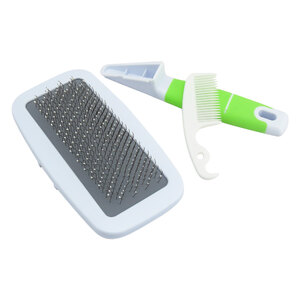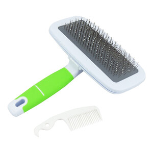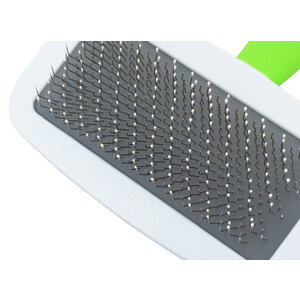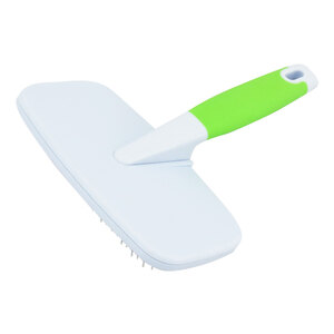 Spazzola massaggiante e da toelettatura per animali domestici. Raccoglie i peli morti. Massaggia la pelle. Il design della spazzola massaggiante permette di curare bene la parte interna del pelo senza graffiare la pelle. Dotata di aghi in acciaio inossidabile con una curva di 60 gradi. Ottima per prevenire le malattie della pelle e migliorare la circolazione sanguigna. Strumento per la pulizia delle setole incluso