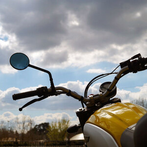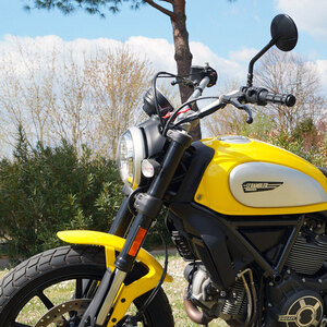 Specchietto universale a manubrio, facilissimo da montare. Adattabile destro e sinistro. Kit in dotazione: M8-M8 sx; 10×1,25-10 x 1,25 sx. Omologato