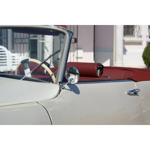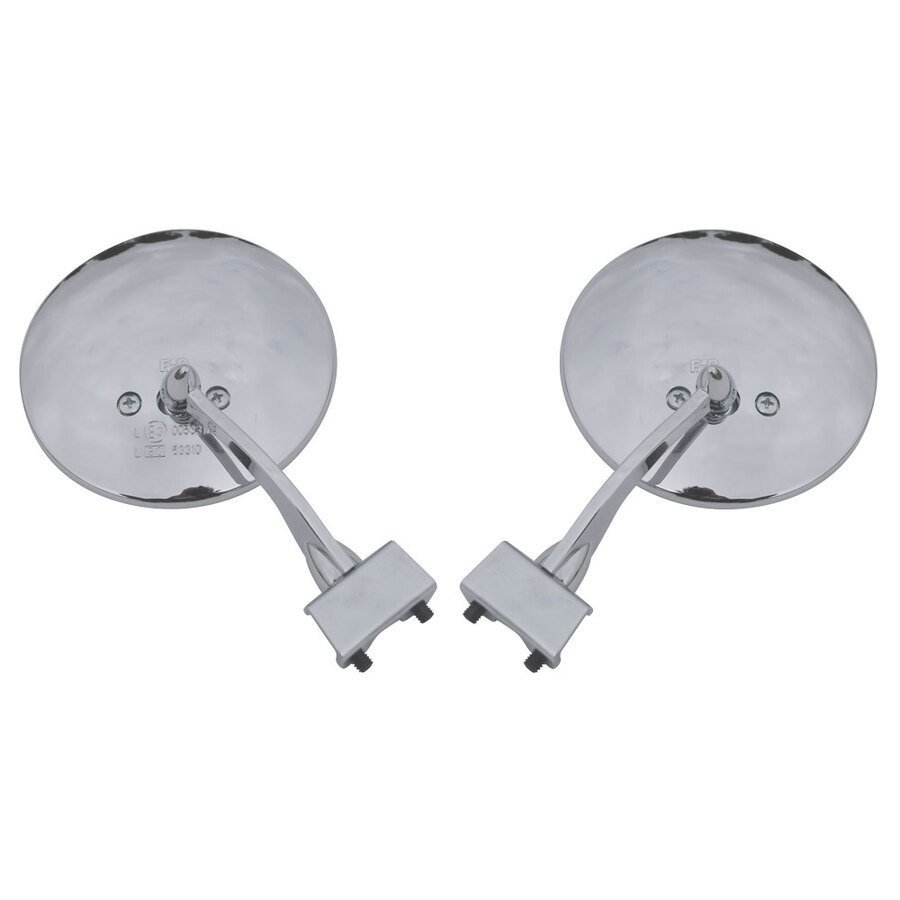 Specchietto richiudibile con asta regolabile, perfetto per le vostre auto d'epoca. Può essere installato sia sul lato destro che sul lato sinistro. Calotta: diam 100mm Morsetto: da 0 a 16mm. Confezione 1 pezzo. Omologato