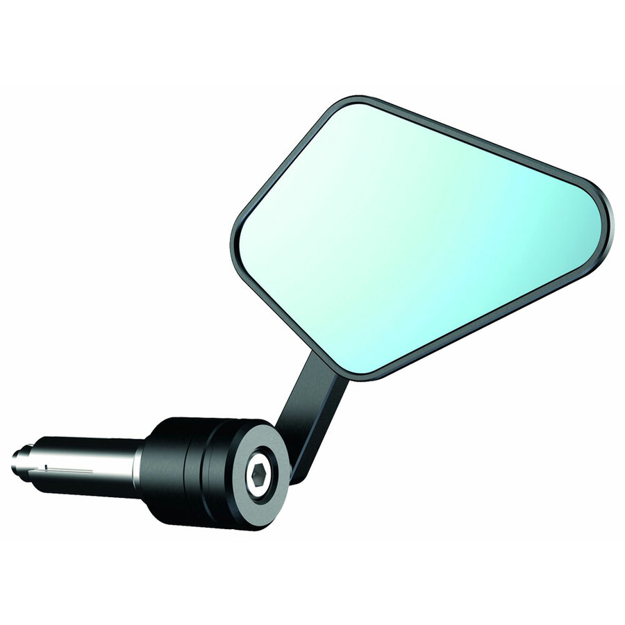 Specchio bar end premium. Regolazione a 360°: consente di montare lo specchietto in varie posizioni sopra o sotto il manubrio. Lavorato in alluminio billet e dotato di vetro convesso antiriflesso. Progettato per adattarsi a manubri da diam. 22mm. Vestibilità universale: adatto a tutti i tipi di motociclette. La confezione include: 1 specchio, boccole di espansione da 12 e 18mm