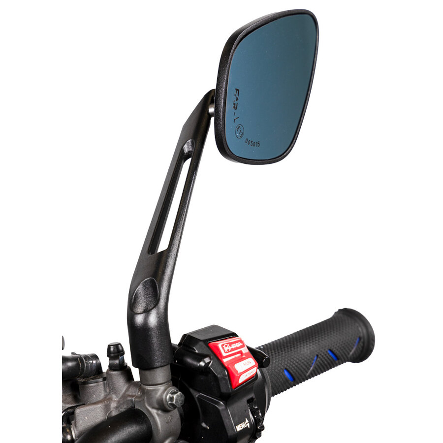 Specchio retrovisore destro, attacco al manubrio, universale. Progettato per garantire massima visibilità, design moderno e prestazioni superiori. Ideale per migliorare l'estetica e la funzionalità della tua moto, si adatta perfettamente a qualsiasi esigenza di guida. Realizzato interamente in alluminio per una combinazione perfetta di robustezza, leggerezza e durata. Design pulito e sofisticato grazie a una meccanica nascosta. Profilo ultraflat per migliorare l'aerodinamicità e donare alla moto un look contemporaneo ed elegante. Asta alleggerita: riduzione del peso complessivo per migliorare ergonomia e prestazioni senza compromettere la stabilità. Vetro azzurrato antiriflesso: ottimizza la visibilità riducendo i riflessi per una guida sicura in ogni condizione di luce. Fornito con un kit di viti M8 e M10 x1,25 per un montaggio semplice e sicuro su qualsiasi moto. Omologato: conforme alle normative per un utilizzo legale su strada. Confezione: 1 pezzo