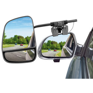 Specchietto retrovisore universalmente montabile su quasi tutte le autovetture. Anche indicato per specchi originali di grandi dimensioni. Coppa aerodinamica di grandi dimensioni con speciale specchietto supplementare regolabile che rende visibile l'angolo morto. Fissaggio mediante 2 morsetti di bloccaggio a vite ed una cinghia supplementare di sicurezza regolabile in gomma. Fornito in coppia. Conforme alla normativa E11
