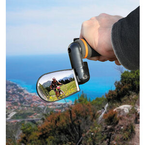 Specchietto manubrio. Dimensioni compatte per l'inserimento nel manubrio. Facile e semplice da installare. Specchio in plastica antiriflesso. Montaggio a destra o sinistra. Completamente regolabile. Per manubri con diametro tubo da 16,7 a 25 mm