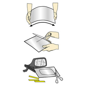 Alta rifletteività infrangibile, flessibile, sagomabile. Prodotto interamente in plastica antiurto. Fornito con biadesivo. Ideale per sostituire il vetro di qualsiasi specchietto