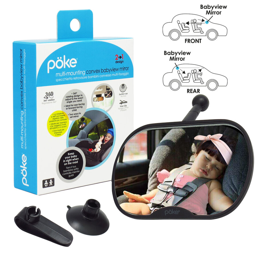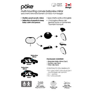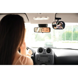Specchietto retrovisore bambini convesso multi-fissaggio. Tieni sempre il tuo bambino sotto controllo mentre guidi. L'immagine riflessa dei genitori aiuta a mantenere i bambini tranquilli. La rotazione a 360° può essere regolata nella posizione più comoda. Ideale per i bambini che viaggiano rivolti all'indietro o in avanti. Due modi per impostare lo specchio: attacco a ventosa, fissaggio a pinza per parasole. Specchietto acrilico infrangibile