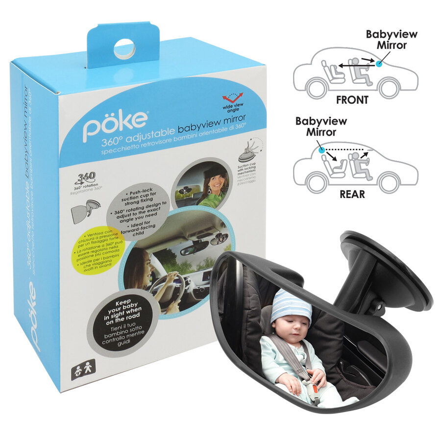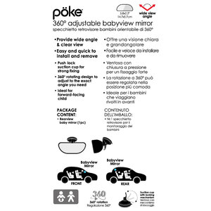 Specchietto retrovisore per controllo bambini, orientabile di 360°. Tieni il tuo bambino sotto controllo mentre guidi. Ventosa con chiusura a pressione per un fissaggio forte. La rotazione a 360° consente la regolazione nella posizione piú comoda. Offre una visione chiara e grandangolare. Facile e veloce da installare e da rimuovere