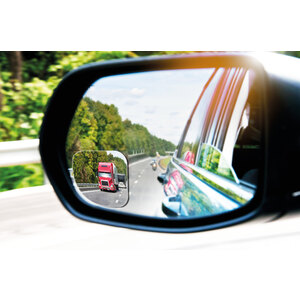 Specchietto grandangolare convesso. Senza cornice, aumenta il campo visivo degli specchi retrovisori dell'auto. Installazione diretta sullo specchio o tramite snodo regolabile a 360°. Adesivo speciale 3M