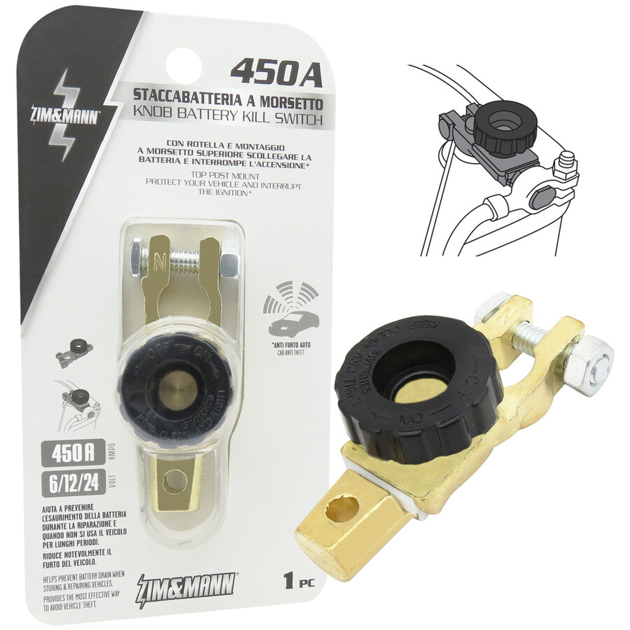 Staccabatteria con rotella e montaggio, a morsetto superiore. Evita il consumo della batteria quando il veicolo non è in uso (o in deposito). Rimuovere la manopola per attivare la protezione antifurto. Basta ruotare la manopola per disconnettere/riconnettere la batteria. Conducibilità e prestazioni stabili. Resistente alla corrosione. Prolunga la vita della batteria. Tensione elettrica: 6/12/24V. Valore continuo: 125A. Valore in movimento: 450A. Temperatura di lavoro: -10-60°C. Diametro negativo: 17,5mm. Dimensioni del cavo: 4-6AWG