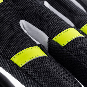 Guanto in tessuto da uomo. Estivo, con rinforzo nocche interne ed inserti in materiale traforato. Dita in materiale traforato ad alta tenacità con inserti in pelle a contrasto e dettagli 3D antiurto. Mignolo in materiale stretch rinforzato con pelle sintetica e dettaglio riflettente. Aree infradito in materiale stretch e tessuto elastico a contrasto. Dorso in materiale stretch e logo AXO. Pollice in materiale traforato rinforzato in pelle sintetica e dettagli 3D antiurto. Polso in materiale stretch e dettagli in pelle sintetica. Laccio polso in materiale stretch. Palmo in pelle e rinforzi in materiale antiscivolo. Inserto stretch su area connessione pollice. Area polso in materiale stretch e dettagli in pelle. Dettagli in materiale "touchscreen compatibile" su indice e pollice. Chiusura laccio polso con velcro. Interno guanto foderato in microfibra. Margine polso rifinito in materiale stretch. Protezione nocche ergonomica interna. Prodotto Certificato EN13594:2015 - Livello: 1KP