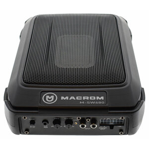 Subwoofer amplificato da 6x8 pollici in cassa chiusa da 120W RMS. Gamma di frequenza 30-150Hz. Ha uno speciale drive da 6x8"quad coil e a discapito del suo volume davvero minimo ha un basso profondo ed un ottima dinamica. Il pannello laterale offre un facile accesso agli ingressi di alto livello o di linea con funzione di auto-sensing e ai controlli per l'ottimizzazione del suono. L'ingombro di soli 280x195mm con altezza di soli 77mm permette di collocarlo in vani ridottissimi dove altri prodotti sarebbero impossibili da installare. Il corpo in alluminio dona grande rigidità per un ottimo controllo delle risonanze. Ingressi di alto livello con auto sensing. Ingressi di linea RCA. Assorbimento max 15A