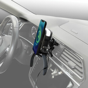 Supporto 2-in1: da presa d'aria + montaggio a ventosa. Compatibile MagSafe. Ricarica senza fili multipla: Smartphone + Apple Watch + AirPods (compatibile anche con AirPods 2, 3 e Pro 2). La funzione di ricarica wireless Qi integrata supporta una potenza di uscita di 5W, 7,5W, 10W e 15W. La manopola di rotazione bloccabile rende il caricabatterie più stabile e più sicuro. Per smartphone senza funzione MagSafe è necessario acquistare separatamente l'adattatore con nostro codice di riferimento 1839067