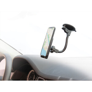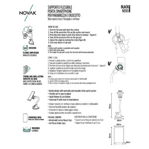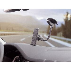 Supporto flessibile porta smartphone per parabrezza e cruscotto. Braccio flessibile. Compatibile con smartphone 102>165mm. Design robusto con ventosa e base adesiva lavabile e riutilizzabile. Braccio flessibile pratico da regolare. Pulsante di rilascio e bloccaggio veloce. Doppia applicazione cruscotto o parabrezza