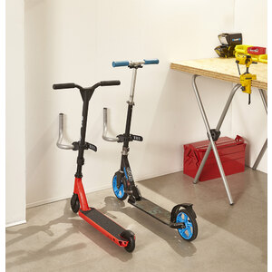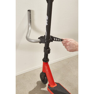 Supporto da muro per monopattino. Porta monopattino da muro per riporre 1 monopattino a terra. Consente qualsiasi orientamento da 10 a 170°. Permette di fissare tutti i tipi di monopattino da diam.25 a 70mm maxi. Tubo in acciaio verniciato a polvere diam.25 mm + manicotto in schiuma e cinghia elastica in PVC. Dimensioni: 280x160x180mm Peso: 0,49kg