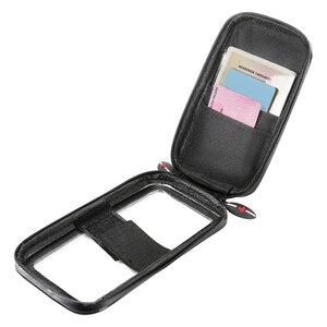 Custodia universale per smartphone. Segue il più possibile la forma del telefono, spessore ridotto per renderla meno ingombrante. Foro passacavo per l'alimentazione elettrica. Pellicola frontale trasparente per consentire l'utilizzo del touch screen, fissata tramite termosaldatura per aumentare la resistenza alla pioggia. Zip laterali impermeabili. Tasche porta tessere interne. Specifica per supporti del sistema OPTI (attacco non incluso vedi esempio nostri codici 1614198, 1614211, 1614200, 1614212, 1614199)