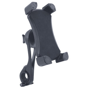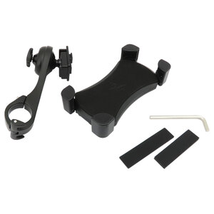 Supporto smartphone da manubrio. Kit completo di base e staffa. Compatibile con manubri di diametro compreso 18>27mm. Regolabile e inclinabile. Rilascio tramite bottone. Staffa da manubrio in lega di alluminio resistente e robusta. Cuscinetto in EVA antiscivolo per evitare vibrazioni e graffi