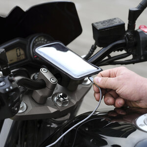 Nuovo supporto a vite, consente di fissare il telefono al manubrio in pochi secondi e di lasciarsi guidare dal GPS. La custodia magnetica e sensibile al tocco protegge il telefono dalle vibrazioni e dalla pioggia. Compatibile con quasi tutti i manubri da 22 a 32mm di diametro. Protegge dalle vibrazioni del motore. Custodia perfettamente tattile. Compatibile con Face ID (Android). Apertura centrale per la porta di ricarica USB. Sistema magnetico brevettato innocuo per il telefono. Eccellente potere di tenuta: testato ad alta velocità (225km/h). La confezione include: supporto magnetico a vite; custodia impermeabile con apertura per fotocamera, tre rondelle in silicone per adattarsi al diametro del manubrio, chiave a brugola, 2 viti di fissaggio, borsa da trasporto
