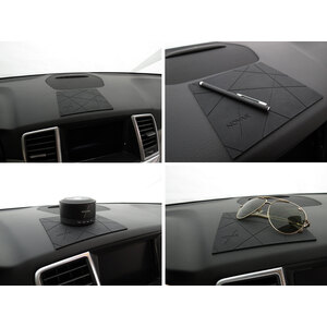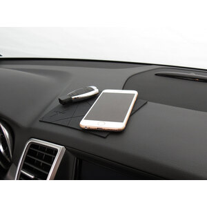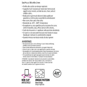 Tappetino antiscivolo per cellulare. Profilo ultra sottile con design registrato. Supporto multi funzione per tenere ben fermi piccoli oggetti come monete, occhiali da sole, chiavi, carta di credito e altro.. Realizzato in gomma di silicone di alta qualità per garantire un ottimo grip e assorbibilità antivibrazioni. Non scorre, non cade e non slitta. Resistente da -65°C a 200°C di temperatura. Da applicare su una superficie pulita sia piana che curva come il cruscotto, casa, ufficio, barca e altro ancora.. Facile da rimuovere e ri-applicare nella posizione desiderata. Se sporco o con poca aderenza può essere lavato in acqua tiepida per riattivare le caratteristiche originali. Quando rimosso non lascia residui di alcun genere