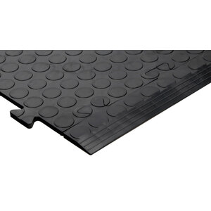Scivolo femmina per piastrella in pvc (piastrella non inclusa, acquistabile separatamente, vedere nostro codice 2134954). Superficie con disegno in rilievo "a bolle". Ideale per laboratori, garages, palestre, sale gioco, sale espositive, stabilimenti, rivestimento temporaneo, piano carico furgoni, luoghi pubblici. Caratteristiche: morbida, durevole e tenace, facile da pulire, buon isolamento termico e acustico, resistente alla maggior parte di solventi e agenti chimici, riduce danni causati dall?impatto e vibrazioni, antiscivolo, antifatica, semplice da installare e rimuovere, protegge il pavimento sottostante, elimina la polvere dovuto al vecchio pavimento in cemento. Certificazione CSI Cert