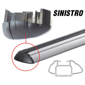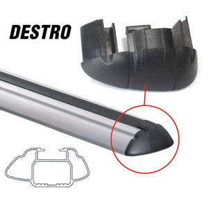 Kit tappi per barre Green Valley in alluminio a sezione asimmetrica (aerodinamica).Tappo con apertura parziale per favorire l'utilizzo del binario a "T"