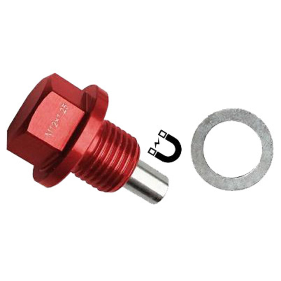 Tappo olio magnetico M12x1,25 Ergal rosso attira le particelle metalliche presenti nell'olio motore/cambio