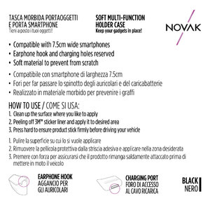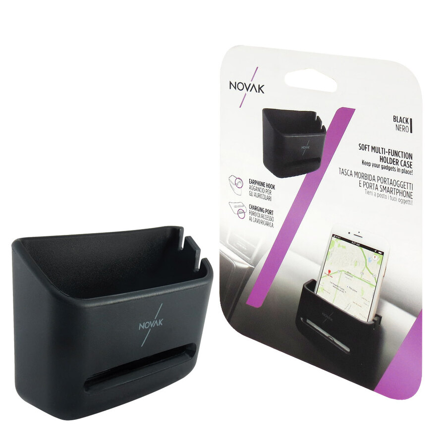 Tasca portaoggetti rigida multifunzione, compatibile con iPhone e moltissimi altri modelli. Adatto per accogliere diversi oggetti come occhiali da sole, sigarette, biglietti da visita, carte di credito, promemoria e altro.. Fori per far passare lo spinotto degli auricolari e del caricabatterie. Realizzato in materiale morbido per prevenire i graffi. Di dimensioni compatte e design minimale. Facile da attaccare su cruscotti, porte e altre superfici grazie all'adesivo 3M di alta qualità