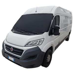 Copertura parabrezza camper e furgone. Utilizzabile tutto l'anno: evita il gelo o il ghiaccio in inverno, protegge dai raggi UV in estate, dalla polvere, resine e foglie. Si applica velocemente e si fissa chiudendo le due alette laterali tra il montante e le porte. Misura standard che si adatta alla maggioranza dei camper e furgoni. Realizzato in poliestere 210D, antistrappo, resistente alle escursioni termiche e agli eventi atmosferici. Fornito con pratica sacca/custodia per contenere il prodotto quando non in uso. Dimensioni: 190x110cm + ali 35x20cm cadauna
