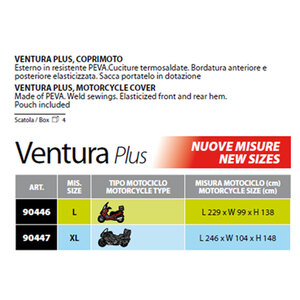Con sagomatura per moto/scooter con parabrezza e bauletto. Esterno in resistente PEVA. Cuciture termosaldate. Bordatura anteriore e posteriore elasticizzata. Sacca portatelo in dotazione