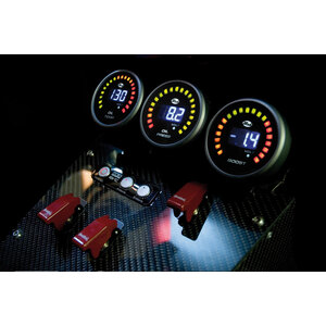 Lo strumento Temperatura Olio visualizza la temperatura dell'olio del vostro motore e permette di evitare surriscaldamenti e rotture. Nelle partenze a freddo, quando la temperatura dell'acqua raggiunge i 90°, il motore potrebbe essere ancora a 50°, questo si nota solo controllando la temperatura dell'olio. Chiedere al motore potenza e un numero di giri elevato, quando in realtà non è ancora caldo, porta ad eccessiva usura e ne diminuisce la durata. Diametro strumento 50mm, digitale, struttura e ghiera in alluminio, quadrante nero, vetro fumè, pulsante per la taratura. Sensore incluso