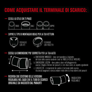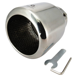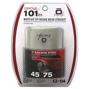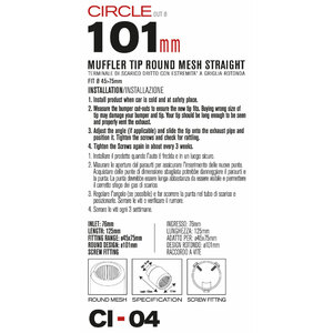 Terminale tondo 101mm, con griglia. Adatto per scarichi con uscita 45>70mm. Ingresso: 76mm Lunghezza: 125mm Installazione: raccordo a vite. Forma circolare con design interno a rete. Acciaio inossidabile di alta qualità. Non necessita di saldature o trapanature. Universale: si adatta alla maggior parte delle uscite delle marmitte. Sistema di fissaggio incluso