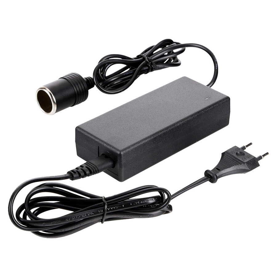 Trasformatore 220-240V > 12V. Per collegare alla presa elettrica domestica, accessori 12V. Permette di utilizzare, a casa o al campeggio, tutti gli apparecchi 12V comunemente collegati alla presa accendisigari in auto: frigoriferi, ventilatori, caricabatteria telefoni cellulari, lettori cd, lampade, torce... Cavo da 340cm. Input: 230V AC-50 / 60Hz (1,6A). Output: 12V DC - 6A
