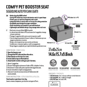 Realizzato in tessuto Oxford 600D di qualità. Le robuste barre del telaio in PVC assicurano che il seggiolino rimanga in buone condizioni. Protegge il seggiolino della vostra auto da impronte e graffi. Il laccio integrato permette di fissare il collare o l'imbragatura per una maggiore protezione e sicurezza. Design a rete traspirante per una corretta ventilazione. Leggero e pieghevole, Si può riporre facilmente quando non si usa. Installazione e rimozione rapida sui sedili con poggiatesta. Istruzioni per la pulizia: lavare a mano o tamponare, poi lasciare asciugare all'aria. Adatto per animali domestici fino a 7,5 kg di peso. Contenuto: 1 rialzo per sedile per animali domestici; 1 cinghia di fissaggio; 2 tubi in PVC. Dimensioni: 37x40x25cm