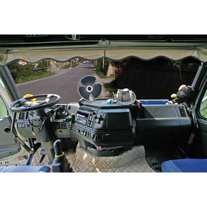Con griglia metallica cromata. Funzionamento fisso o oscillante. Con snodo per regolazione orizzontale e verticale del flusso di aria. Spinotto accendisigari con fusibile, interruttore e spia a led. Montaggio fisso con staffa e viti, oppure mobile tramite pinza a clip. 24V, diam. 8cm
