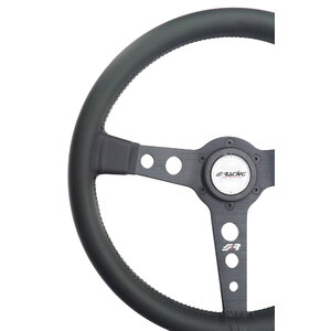 Volante sportivo in ecopelle nera, cucitura nera, diamtero 350mm. A seconda dell'auto dove lo si andrà ad installare, sarà necessario: valutare l'ingombro totale del volante originale e scegliere il diametro giusto; acquistare il mozzo che è specifico per ogni auto (per l'applicazione di un volante sportivo è neccessaria l'installazione del mozzo specifico, il mozzo, specifico per ogni modello di auto, non è incluso nella confezione di vendita del volante, va acquistato separatamente). I volanti sportivi sono destinati esclusivamente a veicoli da competizione, non sono omologati per la circolazione stradale. Far installare solo da personale specializzato/esperto