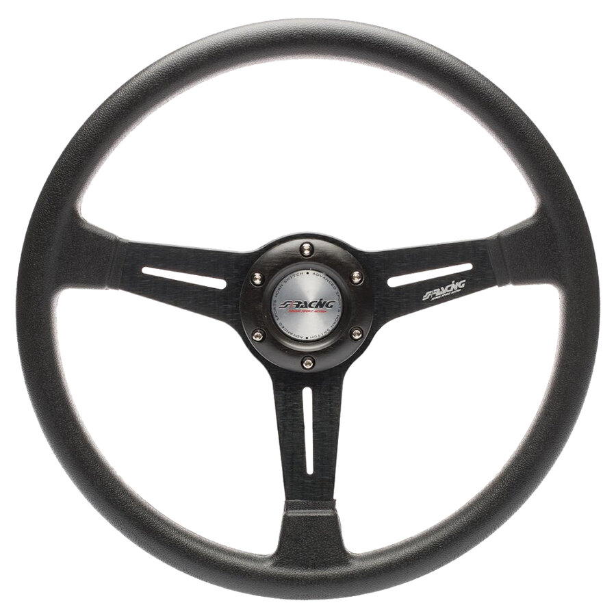 Volante sportivo in poliuretano nero. Diametro 350mm. Per l'applicazione di un volante sportivo è neccessaria l'installazione del mozzo specifico (mozzo non incluso in confezione). I volanti sportivi sono destinati esclusivamente a veicoli da competizione, non sono omologati per la circolazione stradale. Far installare solo da personale specializzato/esperto