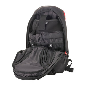 Zaino comodo e compatto. Materiali di alta qualità. Tasca per MP3/smartphone. Silhouette sportiva progettata per prestazioni aerodinamiche a basso profilo durante la guida. Capacità di 17 litri con tasca interna per ospitare la maggior parte dei computer da 15 ". Tasca foderata in pile resistente all'acqua con uscita cuffie. Spallacci anatomici regolabili, imbottiti con cinturino pettorale a sgancio rapido per maggiore sicurezza e comfort. TPR e dettagli logo ricamati