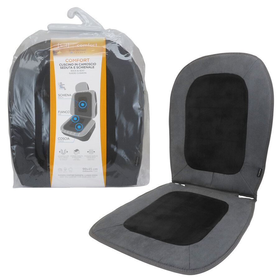 Cuscino auto universale in tessuto scamosciato. Compatibilità universale: adatto alla maggior parte dei veicoli. Fissaggio semplice: dotato di bande elastiche per un'installazione rapida e sicura. Protezione totale: salvaguarda i sedili da liquidi, graffi, sporco e danni. Comfort ergonomico: rilassa i muscoli tesi, allevia i disturbi legati alla postura, riduce il mal di schiena grazie al design ammortizzante. Materiali di qualità: tessuto scamosciato traspirante per il massimo comfort. Base anti-scivolo per garantire stabilità. Perfetto per lunghi viaggi: ottimale per ammortizzare gli urti e migliorare l'esperienza di guida. Una soluzione elegante e funzionale per proteggere i sedili e garantire il benessere durante ogni viaggio!