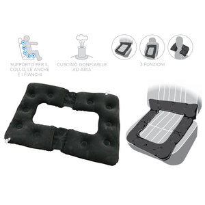 Impiego multiplo per supportare il collo, vita e fianchi. Ideale per lunghi viaggi e si adatta perfettamente ad automobili, aerei, treni.. Il materiale floccato è confortevole, morbido e traspirante. La valvola di sicurezza dell'ugello di soffiaggio impedisce la fuoriuscita dell'aria